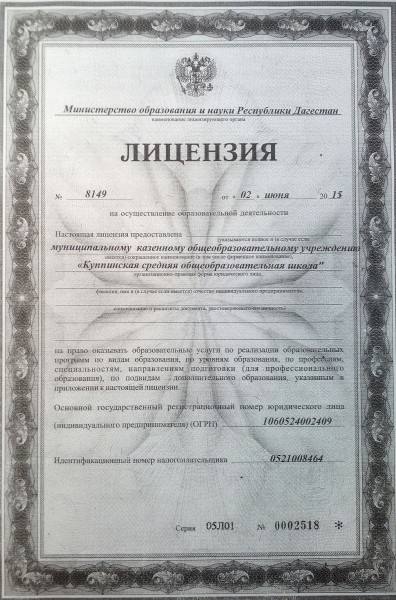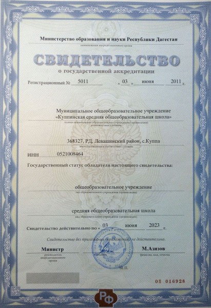 | Адрес местонахождения образовательной организации* | 368327, Республика Дагестан, Левашинский район, с. Куппа |